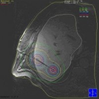 Under local anesthesia and administration of pain medication, the tumor is punctured under computer tomographic (CT), magnetic resonance imaging view with subsequent insertion of the catheters into the target volume.